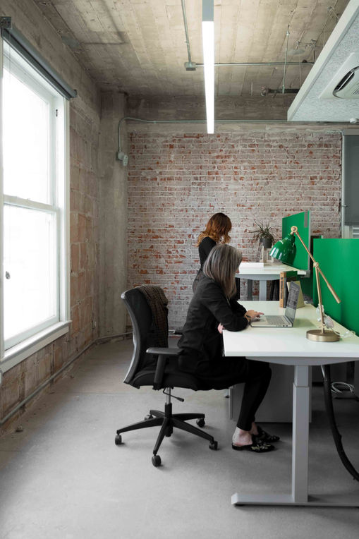 Henderson’s leaders wanted this office to complement its urban surroundings, so we sought to uncover original brick walls, concrete floors and ceilings. Built-ins have concrete countertops and steel details with accents in Henderson’s bold green. Upholding Henderson’s commitment to employee health and satisfaction, we called for adjustable height desks and greenery throughout, along with bicycle storage and monitored workspace light levels.