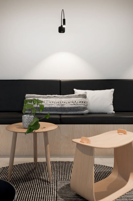 Separate from the original scope, and true to ROW’s experimental spirit, we worked with Andy Griffith and Rose Apodaca of local furniture distributor A+R for a furniture study exploring informal meeting and touchdown spaces. Seeking to humanize the workplace and create a sense of comfort through soft textures and palettes, our group mixed commercial office pieces by Muuto and Hay with softer pieces by Resident and menu.